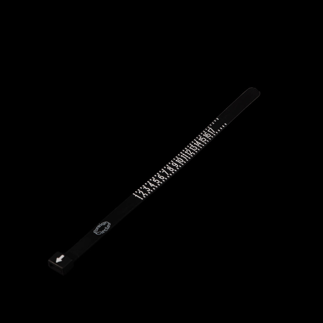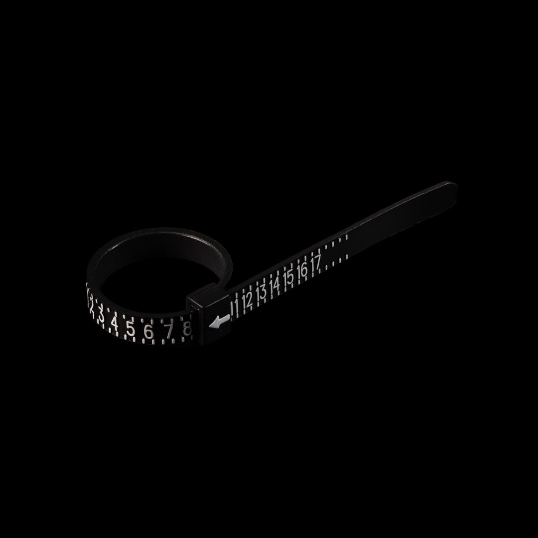 Simply slip the ring sizer onto your finger, adjust the fit and then read the size indicated by the arrow!