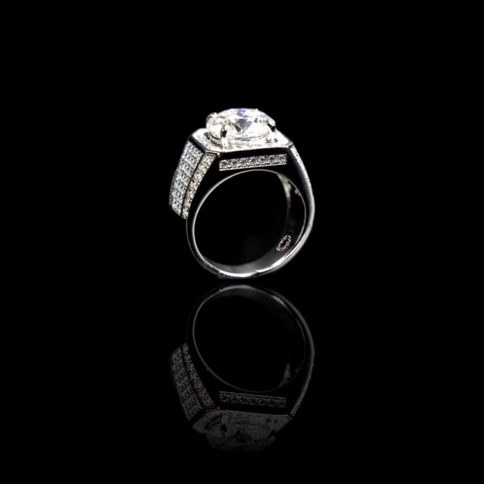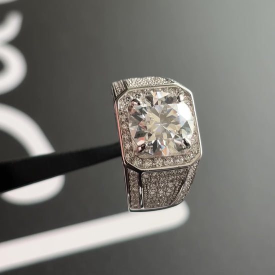 Made from 925 silver, also known as sterling silver, with moissanite stones consisting of 5.1 carat VVS1 clarity cut diamond stones Moissanite diamonds are a level up from cubic zirconia stones and have similar qualities to mined diamonds - and as such, they will pass a basic diamond tester examination. Each moissanite ring comes with a certificate and card of authentication - so you can rest assured knowing that the quality of the diamonds has been tested and authenticated.